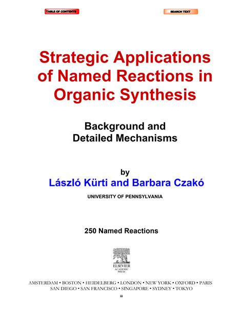 Read Online Strategic Applications of Named Reactions in Organic Synthesis: Background and Detailed Mechanisms PDF ManyBooks